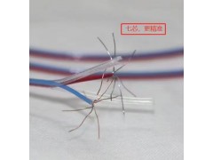 超高级T型湿热热电偶线外层包有透明Teflon隔热材料,有2芯和七芯两种规格,2芯热电偶线主要应用在测温空间较小,或者热电偶线必须穿过开口非常狭小的场合。具有Teflon材料涂层的热电偶线,可以耐受的连续额定温度为200°C,可承受的峰值温度为260°C。