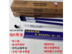 SECOP铂K焊条适用于焊接黄铜和铜合金、焊接铜和不锈钢、铜和铁。此产品的固相液相温度范围较窄,有良好的流动性,易于钎焊操作。SECOP铂K焊条是焊接铜合金较好的选择之一。它的熔点较低,相比较其他钎料能够降低铜合金在钎焊加热过程中的氧化程度。SECOP铂K焊条经常用来代替高银钎料,提高钎焊效率的同时有效降低焊接成本。由于钎剂与钎料的同时添加,SECOP铂K焊条焊条中的钎剂与钎料合金的配合更紧密,简化了钎焊助剂的转移和添加工序,从而提高钎焊操作的效率。