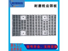 耐磨梳齿筛板是我公司自行开发的应用广泛的主导筛板产品,该筛板具有不堵塞、筛分效率高、更耐磨的显著特点,适用于煤炭、冶金、化工等行业烧结、熟料、焦煤以及各种生块矿石等硬度较高、重量较大的干物料,该筛板根据选用材质不同,可以达到不同的使用寿命。