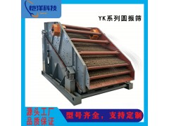 YK系列圆振筛由振动源、筛体、筛网、减振装置和底托组成,筛机侧板采用优质钢板制作而成,侧板与横梁、激振器底座采用高强度螺栓或环槽铆钉连接,结构合理,坚固耐用。YK系列圆振筛是利用普通电机外拖动振打器,使筛体沿激振力方向作周期性往复振动,物料进入筛体后,受力向出料端运动,从而达到筛分目的。