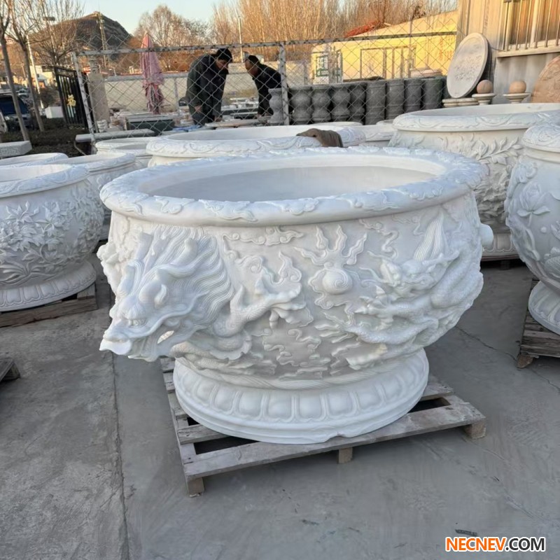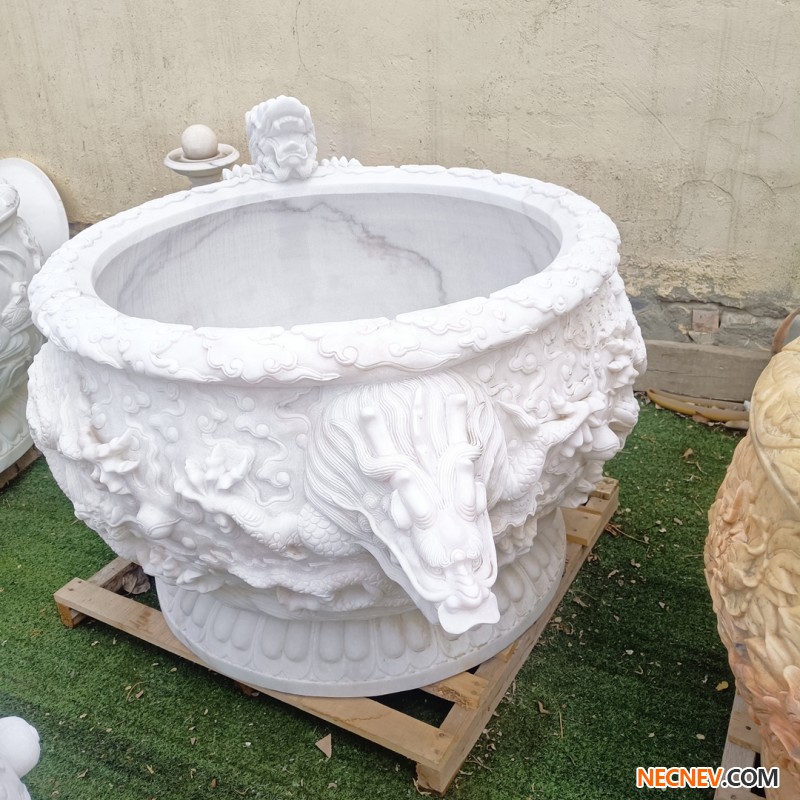 汉白玉石雕龙缸九龙缸大理石青石九龙缸石头缸庭院别墅养鱼石缸